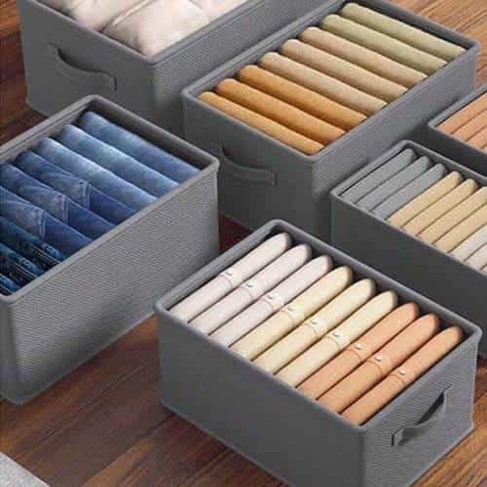 - صندوق قماش للتخزين يستخدم لتخزين الملابس وتنظيمها بحسب الفئات مثل القمصان والبناطيل، مما يسهل العثور عليها وتناولها.